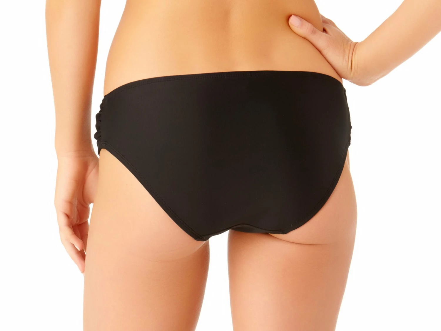 If you’re looking for a medium coverage swim bottom that will go with anything, you’ve found what you’ve been searching for! Our Black Tab Side Swim Bottom in classic black looks perfect with a Black Twist Bandeau Tankini Swim Top, Black High Neck Keyhole Tankini Swim Top, Wave Twist Bandeau Tankini Swim Top or Leaf High Neck Keyhole Tankini Swim Top. You can put these bottoms with anything and they’ll look fantastic. The shirred detail on each side add texture and visual interest, and the perfect fit of this comfortable swim bottom makes them easy to wear anywhere, all day long.